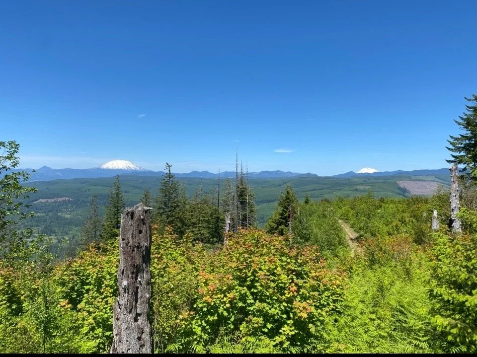 Bells Mountain is a small mountain in the foothills of the Cascades. Its western slope climbs 2000 feet, summiting with views of Mt. Adams and Mt. St. Helens. Positioned in the Salmon Creek watershed, cold water springs on top of Bells Mountain flow into year round streams across the land. Downstream of the confluence with Rock Creek, this water system enters Salmon Creek, which winds its way southwest, eventually entering Lake River. Lake River enters the Columbia River shortly thereafter near the town of Ridgefield, WA.